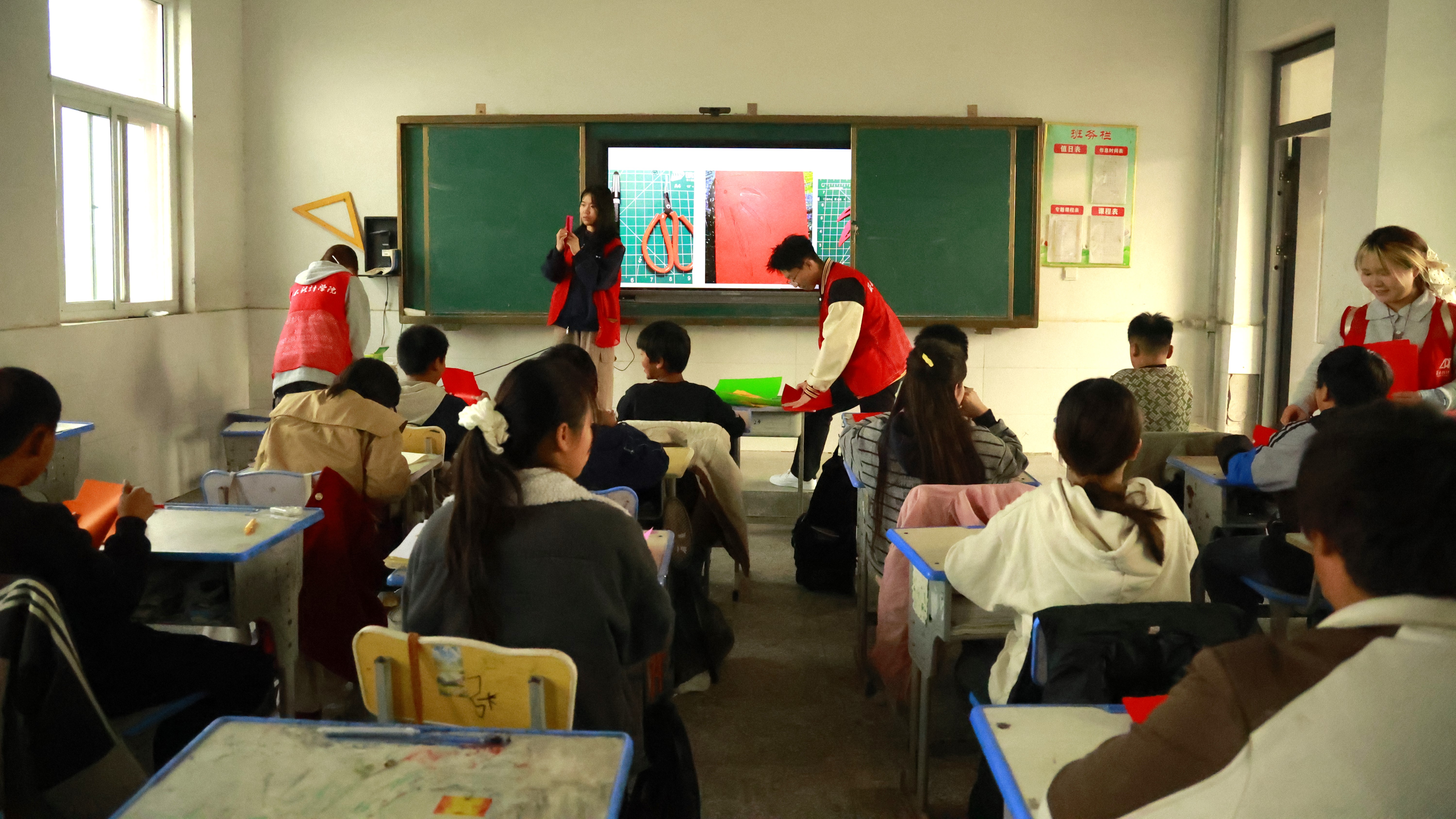 为弘扬劳动精神,传承中华优秀传统文化,助力乡村美育发展,11月14日,我院“乡村行志愿服务队”支教团队前往睢阳区安楼小学,开展以非遗剪纸为主题的教学活动,将传统剪纸技艺带入乡村课堂。