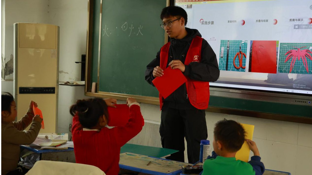 作为我院结合艺术设计专业特色开展的公益实践活动,本次活动围绕“文化传承+劳动实践”展开。支教学生采用“理论讲解+实操教学”的方式,首先为孩子们介绍了剪纸艺术的历史发展、地域风格特点,以及吉祥纹样所蕴含的文化内涵;随后从基础技法入手,现场演示对称折叠、镂空剪刻等剪纸方法,并手把手指导学生动手创作。孩子们在勾画与剪裁的过程中,沉浸式体验传统技艺的独特魅力,不仅锻炼了动手能力,也进一步增强了对中华优秀传统文化的认知与兴趣。