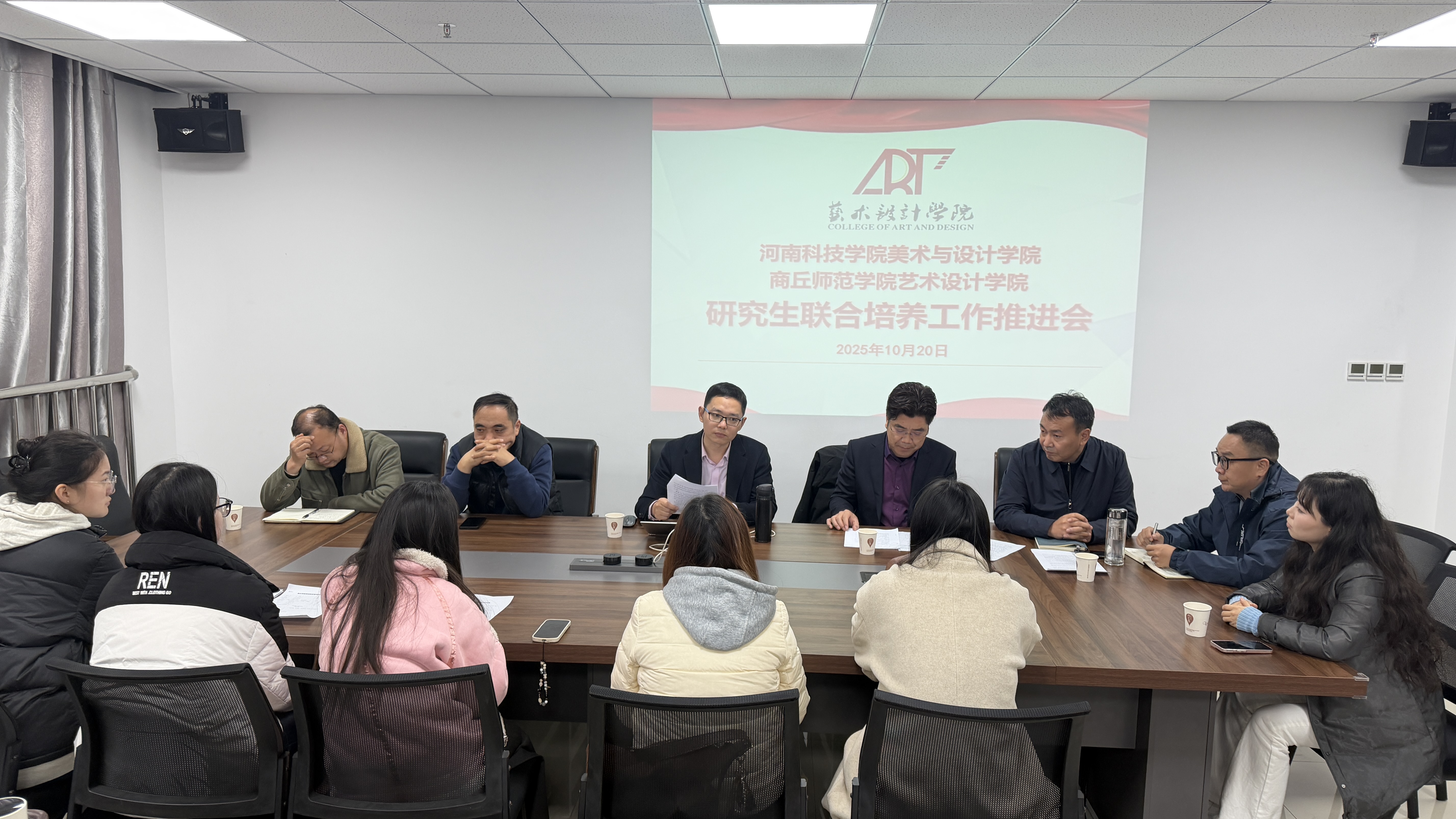10月20日,河南科技学院美术与设计学院到我院召开研究生联合培养工作推进会。河南科技学院美术与设计学院副院长胡国锋,我校科研处副处长梁果,我院院长朱长征、副院长苏世昌,以及两院联合培养导师代表、班主任代表和联合培养研究生代表共同参会。