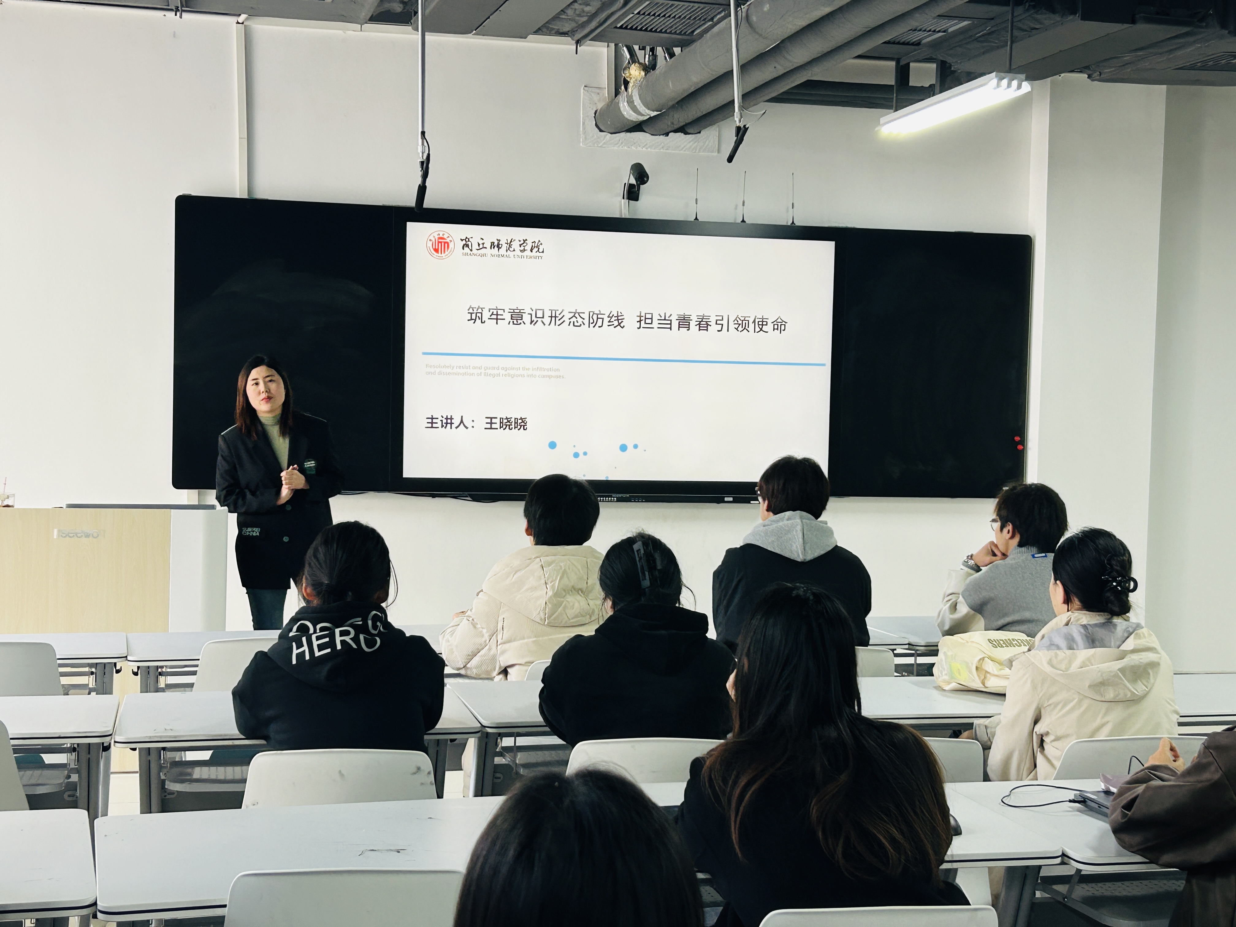 10月28日学生第二党支部书记王晓晓以“端正思想,早日光荣入党”为题,聚焦意识形态防线建设,结合优秀党员事迹,帮助入党积极分子厘清入党认知、校准初心方向。