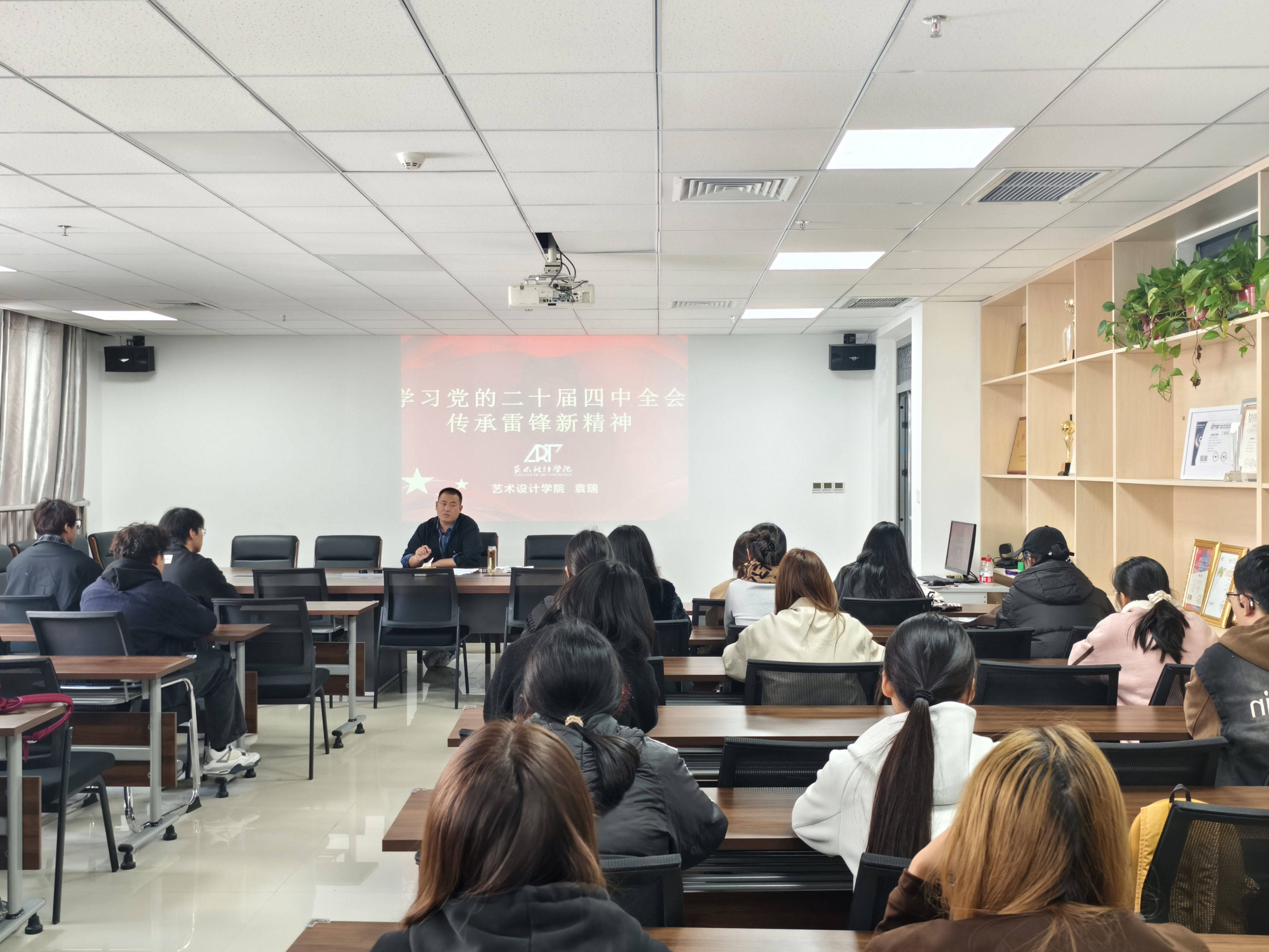 10月30日,学院党委宣传委员、团委书记袁瑞主讲 “学习党的二十届四中全会、传承雷锋精神” 课程,解读全会精神与设计领域的契合点,鼓励入党积极分子以专业所长服务社会发展。