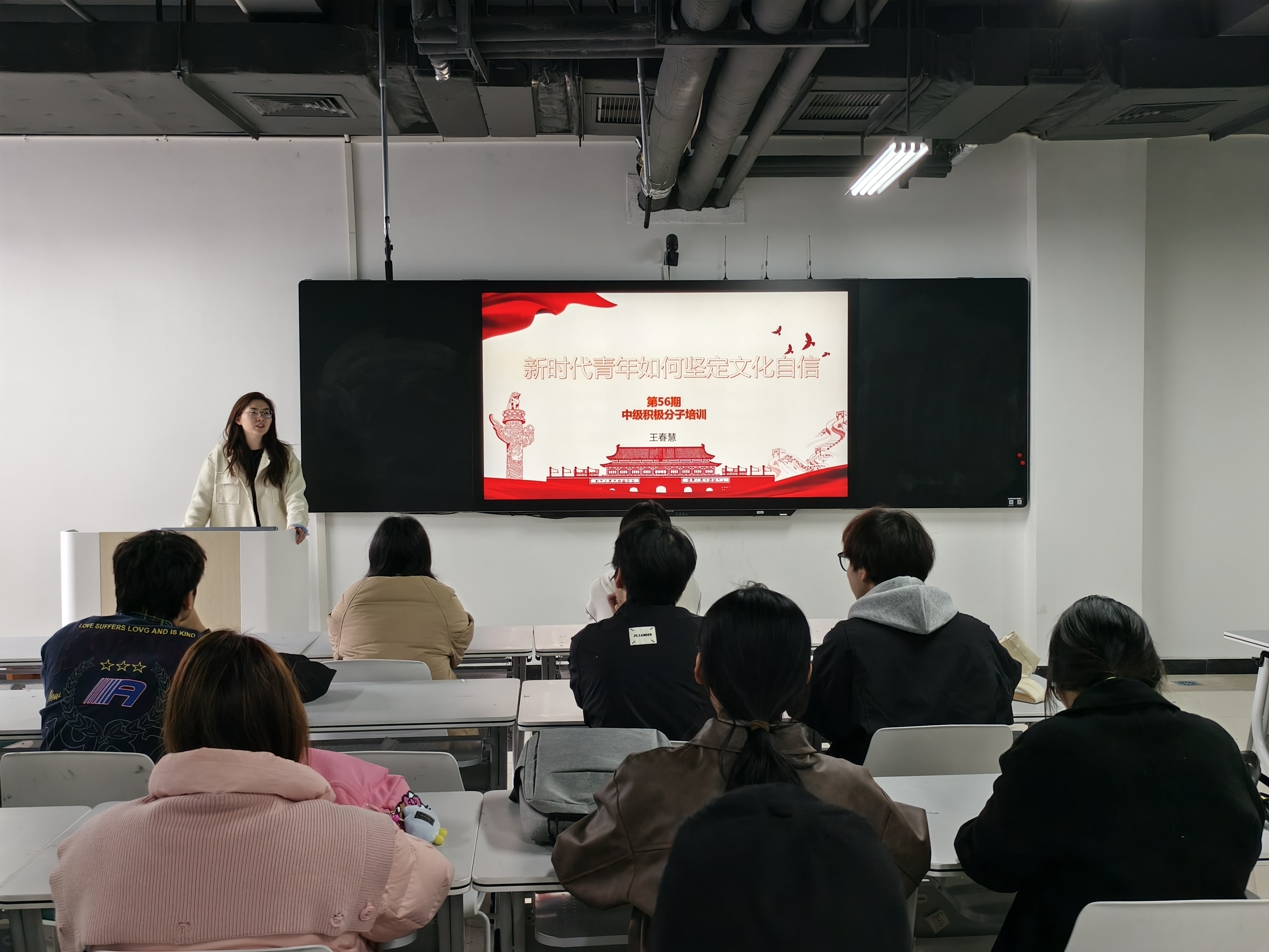 10月27日,学生第三党支部书记王春慧围绕“新时代青年如何坚定文化自信”,从中华优秀传统文化、革命文化和社会主义先进文化三个维度,结合专业特点为入党积极分子指明文化传承与自信构建的方向。