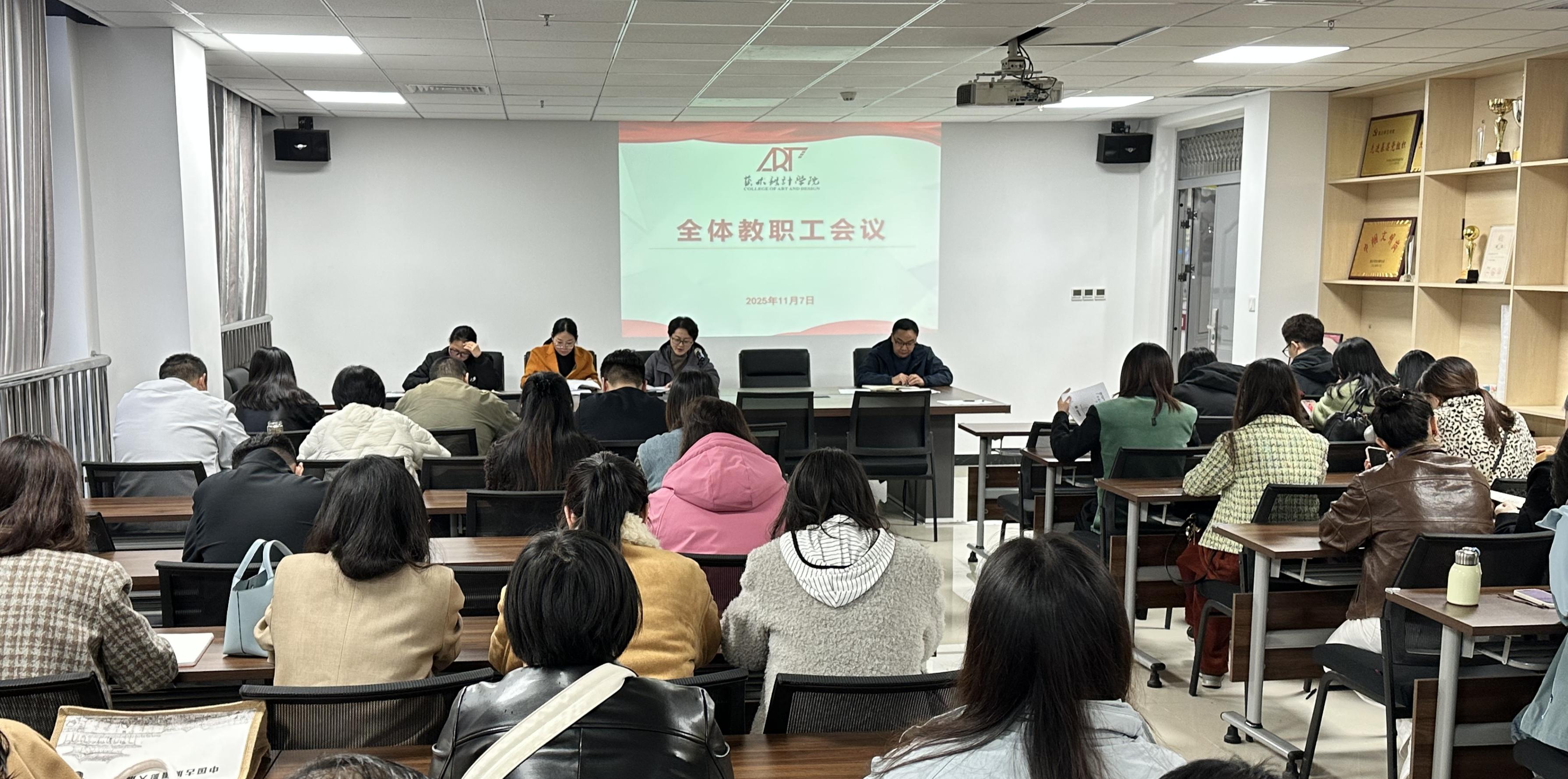 11月7日,我院在艺术中心308会议室召开全体教职工会议,学院领导班子与全体教职工共同参会。会议由学院党委书记杨莹莹主持。