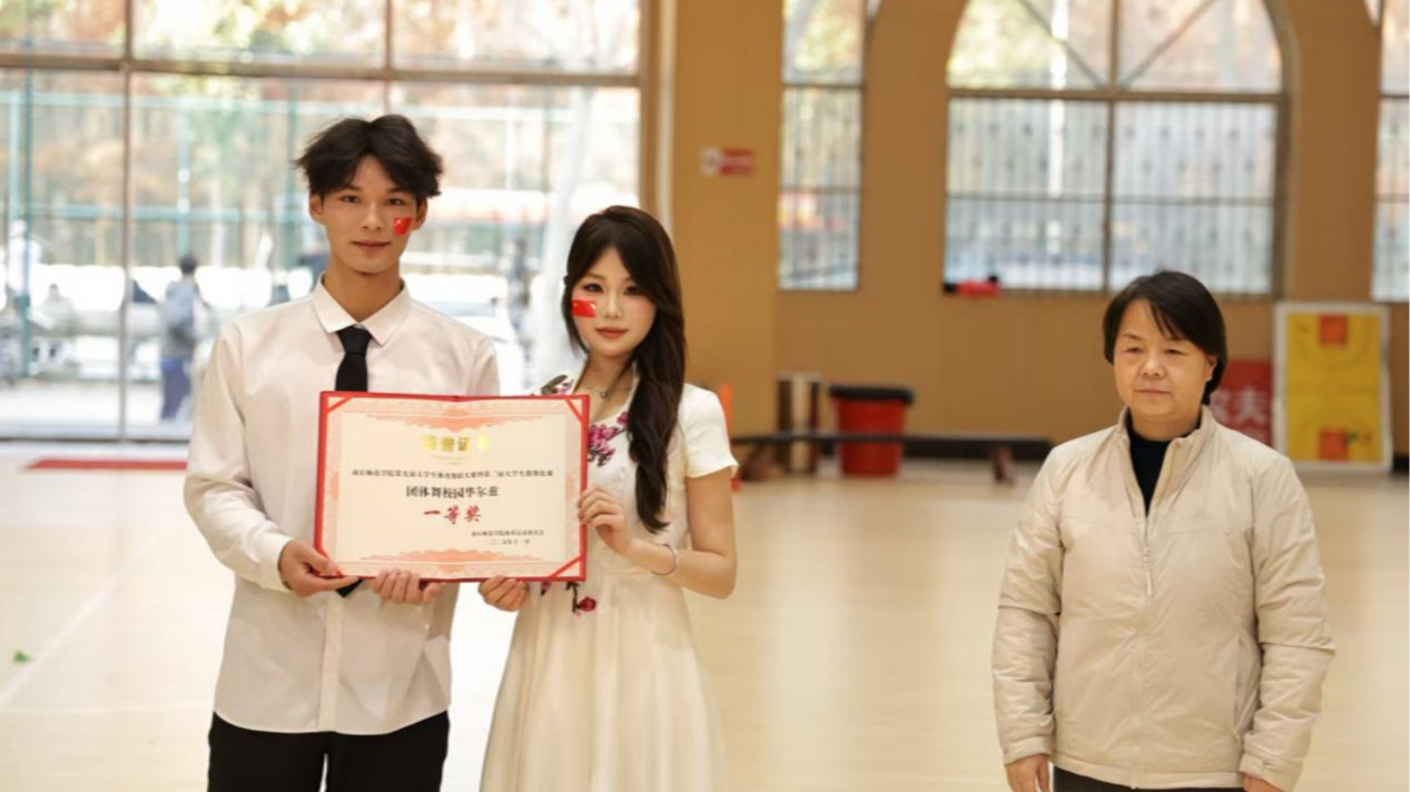 比赛现场气氛热烈。在团体舞校园华尔兹项目中,艺术设计学院代表队服装统一、舞步流畅,伴随优雅的华尔兹旋律,以出色的艺术表现力赢得了评委与观众的认可。在平四自编套路比赛中,队员们巧妙融合现代元素与传统舞步,凭借创新的编排和整齐的动作获得阵阵掌声。最终,学院代表队荣获团体舞校园华尔兹一等奖与团体舞平四二等奖的优异成绩。