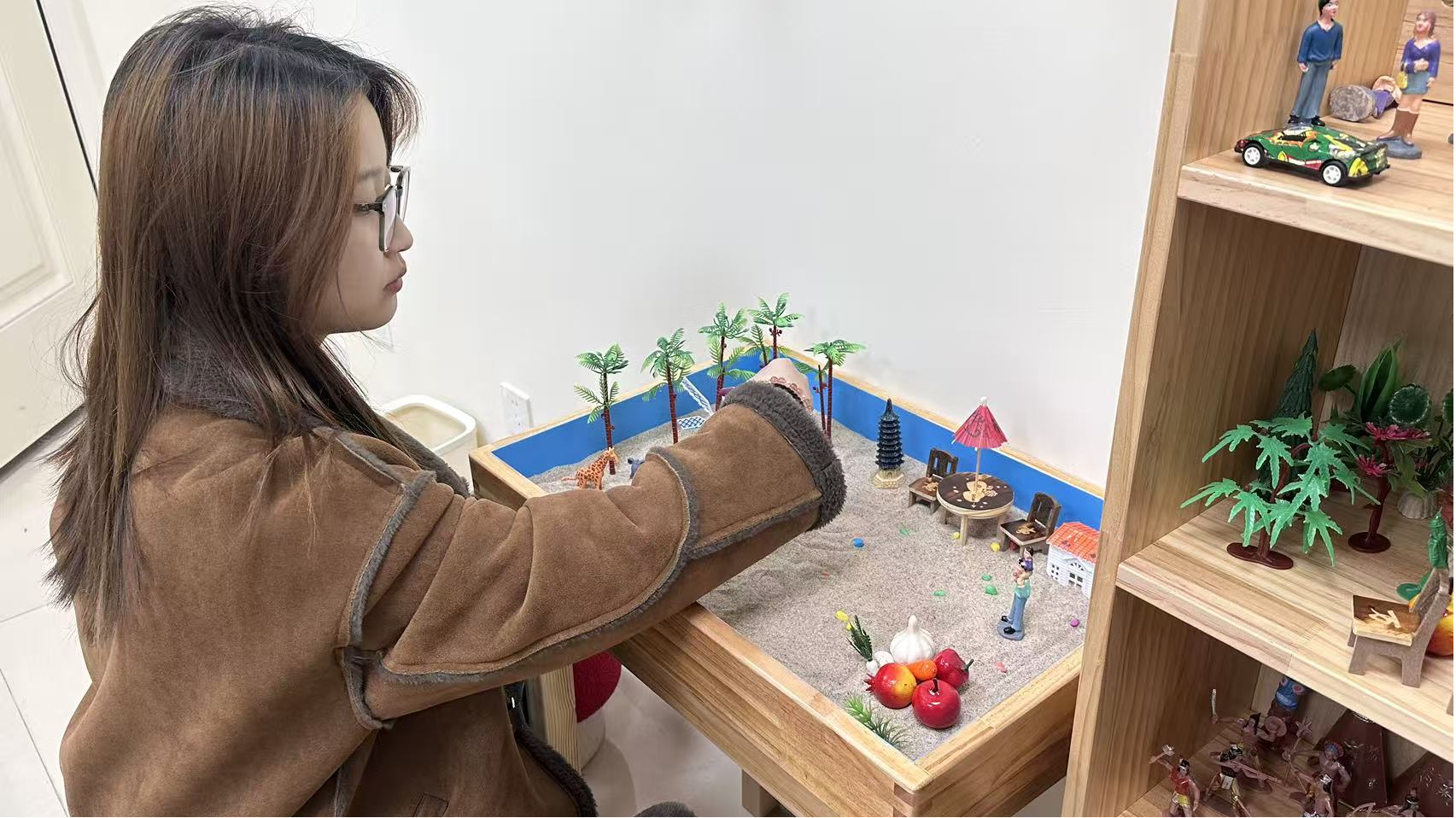 第一阶段,曲雯洋在王春慧的引导下,通过使用心理沙盘自主构建场景,探索个人兴趣、能力与职业价值取向。同时,结合艺术设计专业特点,解读沙盘意象,梳理内在职业倾向,激发生涯优化意识。第二阶段,组织前往睢阳区古宋街道宋小庙街区开展“设计职场行”实地调研。与王飞进行深度生涯访谈,学生深入了解设计类岗位的实际需求、能力标准、项目难点与发展路径,进一步将自我认知与行业现实相对接。