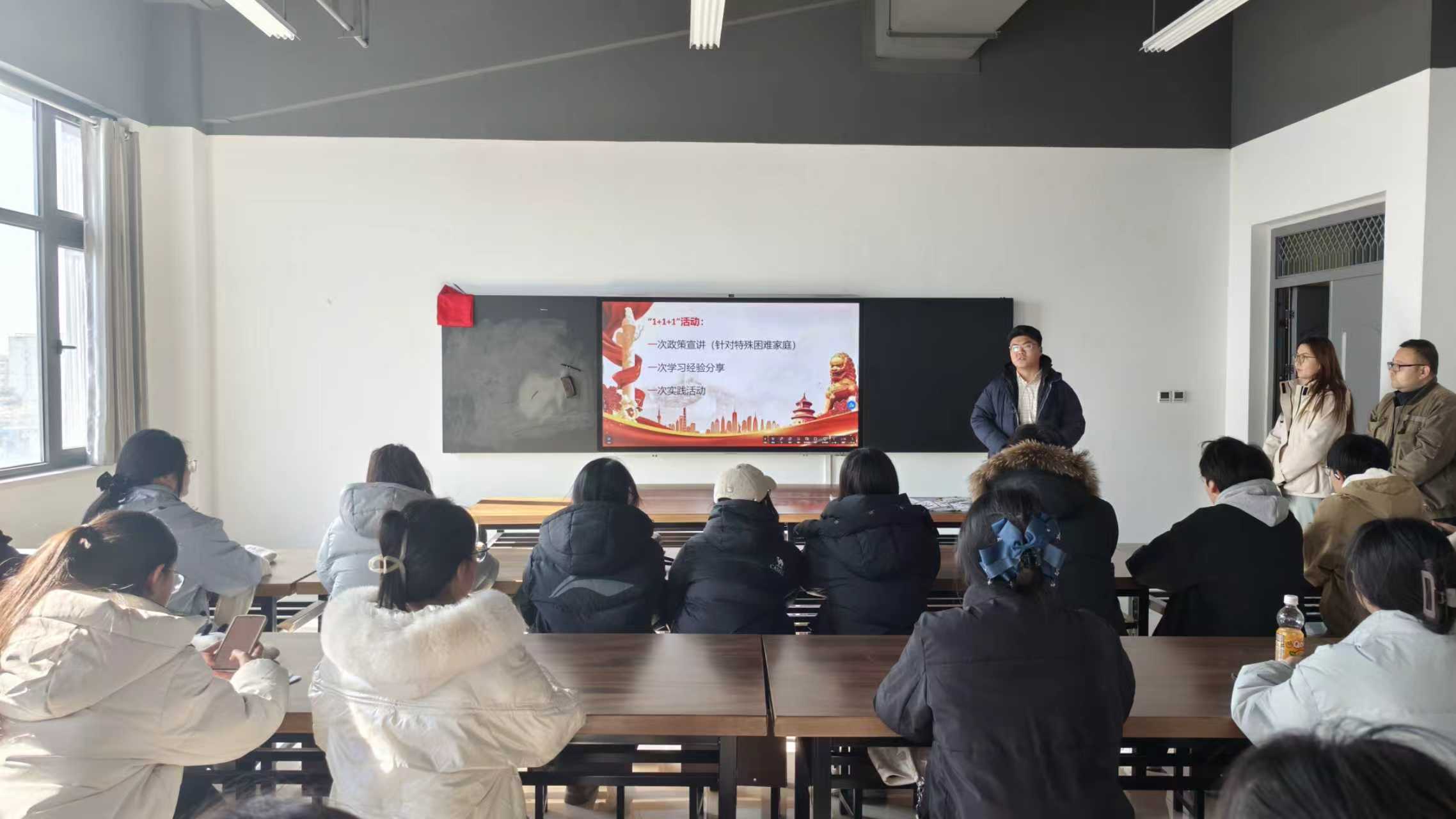 为深入贯彻落实国家学生资助政策有关要求,进一步加大资助政策宣传力度,推动各项资助政策精准落地,1月12日,我院在艺术中心406会议室召开“暖冬返乡、政策到家”资助宣讲动员会。学院党委副书记侯双霞,学工办主任张双力,辅导员韩翔、王春慧以及2025年国家励志奖学金获得同学参加会议。