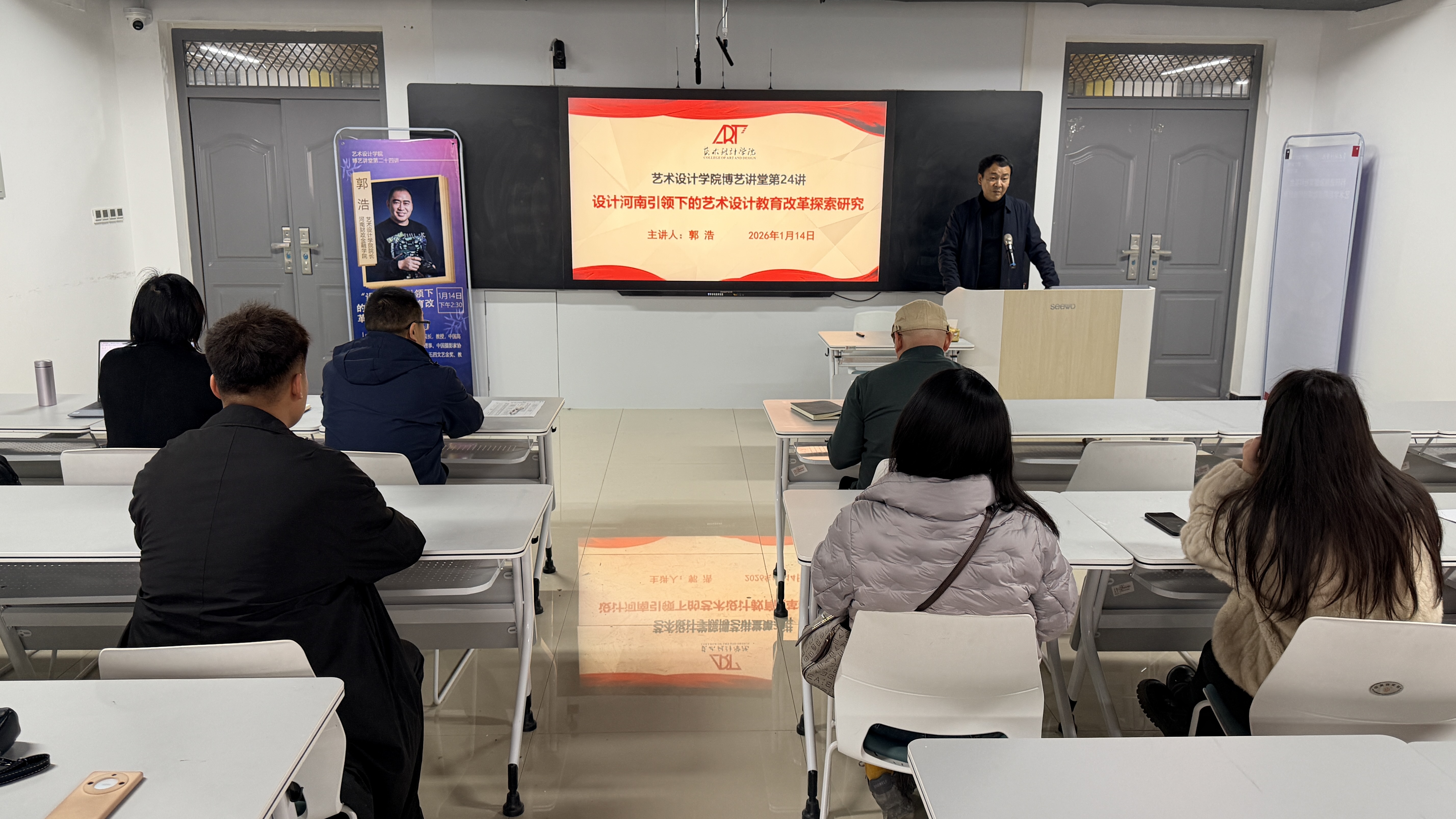 1月14日下午,我院博艺讲堂第24讲顺利开讲,特邀河南财政金融学院艺术设计学院院长郭浩教授,作“设计河南引领下的艺术设计教育改革探索研究”主题分享,讲座由院长朱长征主持,学院全体骨干教师及部分专业教师代表参会。