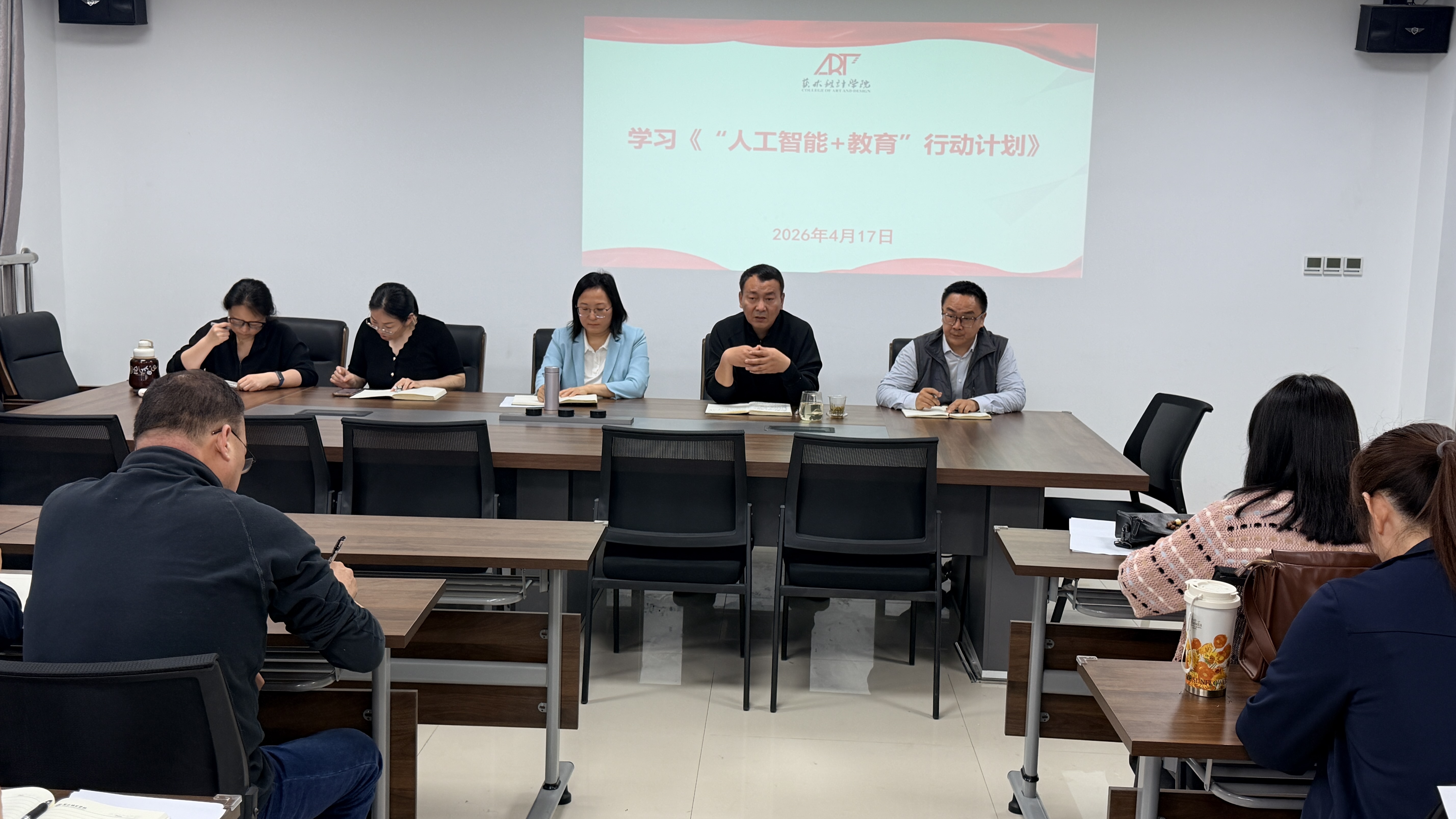 4月17日,我院在艺术中心308会议室召开专题学习会,深入学习《“人工智能+教育”行动计划》文件精神,学院领导班子、各系及教研室主任、全体行政人员参会,会议由党委书记蒯秀丽主持。